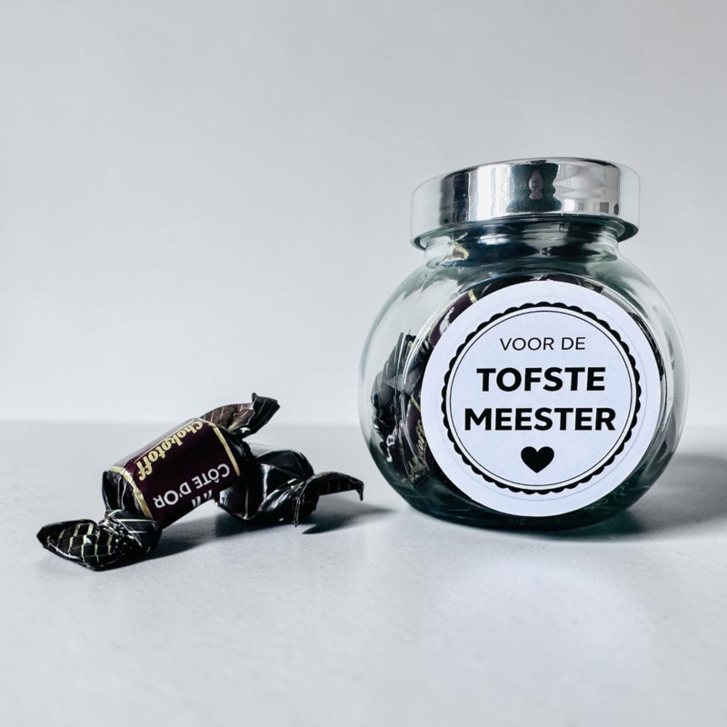 SNOEPPOTJE Voor de TOFSTE meesterDeze te schattige snoeppotjes zijn voorzien van een standaard tekst.