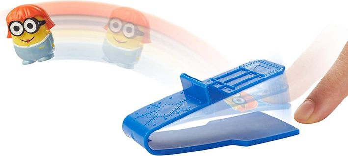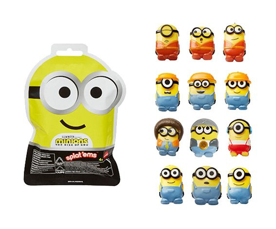 Dit leuke Minions Splat'Ems spel bestaat uit een zacht, plakkerig Minion poppetje, een lanceerder, een bouwbare doelkaart, stickers en een kaarthouder. Alles in thema van de Minions film 'The Rise of Gru'. Plak de stickers op de doelkaart want daar blijft de Minion aan plakken. Lanceer jouw Minion door de lucht en mik op de doelkaart. Lukt het jou om de Minion door het gat te krijgen of blijft het aan de doelkaart plakken? Ook een erg leuk artikel om te sparen want je kunt meerdere doelkaarten en kaarthouders aan elkaar bevestigen. Verpakt in leuk verrassingszakje met handleiding. Welke Minion krijg jij?